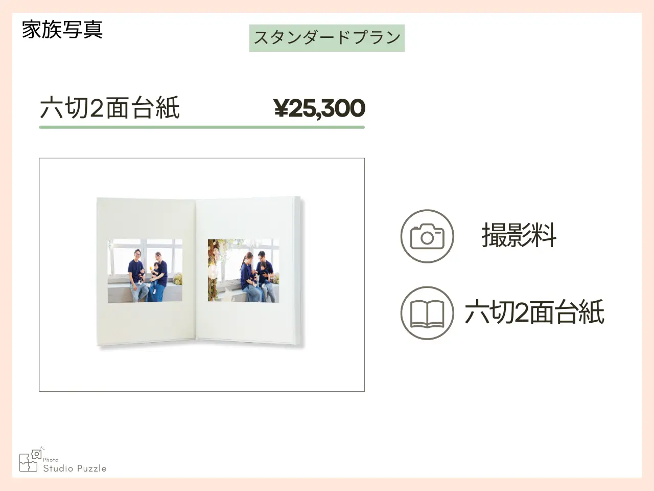 ・撮影パターン追加(人数変更) +¥9,900(六切1面追加) ・データ追加 1カット¥3,300/全カット¥33,000